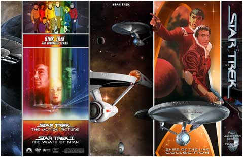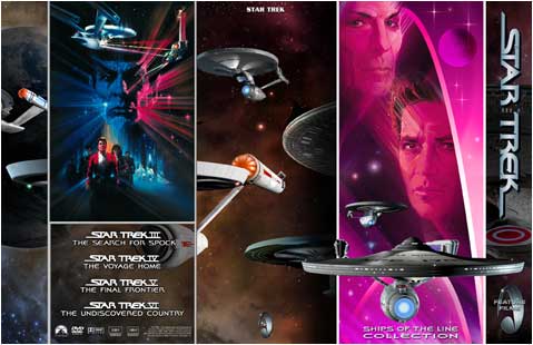 These are replacement covers for THE SHIPS OF THE LINE COLLECTION. These two covers now need to fit around an eight disc case (if they weren't already). The Search for Spock get's moved in with the second films case, which open up 4 spots for the Animated Series, which will also share it's case with the first two films. There are also two versions of each of these covers, depending on which version of The Ships of the Line set you have. One matches up with the 3 seasons of TOS (The Alpha Set)and the other goes with the 5 "Volumes" of TOS (the Beta Set).